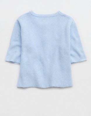 The Details The best of both worlds! unREAL sweater fabric is super cozy AND breathable.CrewneckShort sleevesCardigan with functional buttonsRibbed stitch deets Materials & Care...