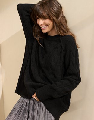 The Details The best of both worlds! unREAL sweater fabric is super cozy AND breathable.Pretty cable-knit deetsRaglan sleeves for easy layeringRibbed deets on the neck cuffs and...