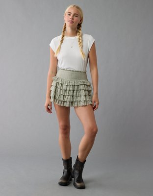 The Details Shorts underneathRuffles Materials & Care 100% NylonMachine washImported Size & Fit Classic silhouetteHigh-waistedMini length