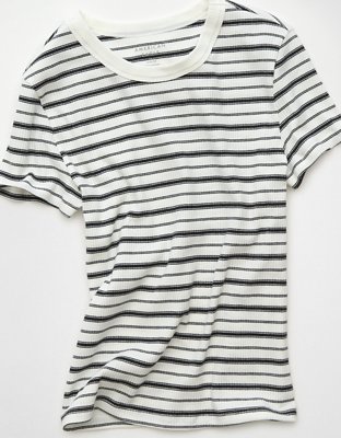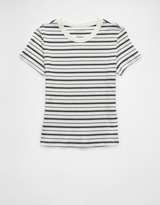 The Details Soft ribbed cotton blendShort sleevesCrew neckStripedThis is Real Good: Made with the planet in mind & a promise to continue to do better. Materials & Care 55% Cotton...