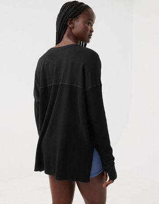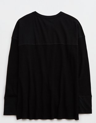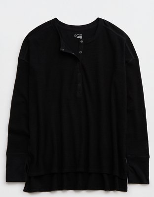 The Details THE LOOK: Ultra-textured waffle knit. Henley neckline.THE FEEL: Soft cotton with extra str-e-e-e-tch.THE MOVES: Throw-on-and-go!Accessibility deets: over-the-head...
