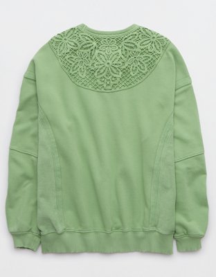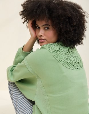 The Details Real Good Everyday FleeceRibbed trim on crewneck cuffs and hemBalloon sleeves and back crochet deetsReverse fabric side panelsAccessibility deets: over-the-head access...