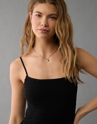 The Details Spaghetti strapsSquare neckSmocked bodiceDrop v-waist Materials & Care 60% Cotton 40% ViscoseMachine washImported Size & Fit Drop waist silhouetteSleeveless