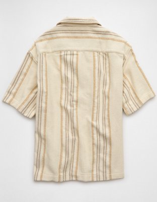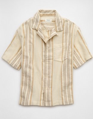 The Details Breezy cotton-blendCamp collar designed to lay flatFull button-up frontChest pocketStripesThis shirt is Real Good: made with the planet in mind Materials & Care 80%...