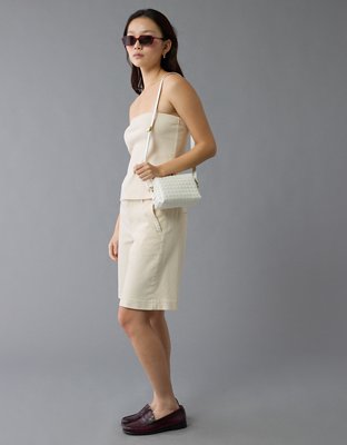 The Details Quilted square textureHandleOptional crossbody strap2.5" H x 4.5" W x 7" LStrap drop: 21.5" Materials & Care 100% PolyurethaneImported