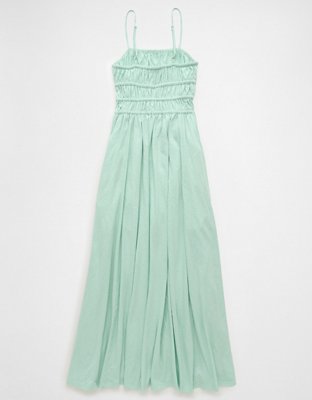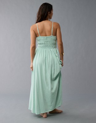 AE Sunchaser Knit Smocked Bodice Striped Midi Dress