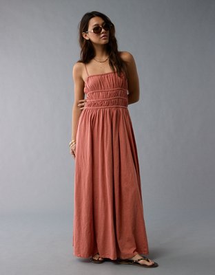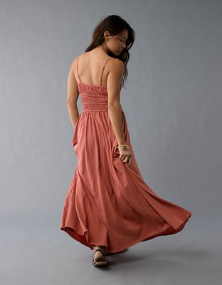AE Sunchaser Knit Smocked Bodice Striped Midi Dress