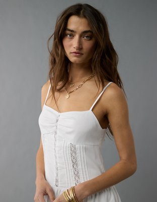 The Details Spaghetti strapsSweetheart neckCorset-inspired boning with lace insetsTiered skirt Materials & Care 100% ViscoseMachine washImported Size & Fit Fit & flare...