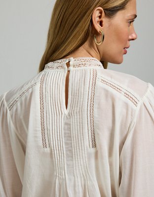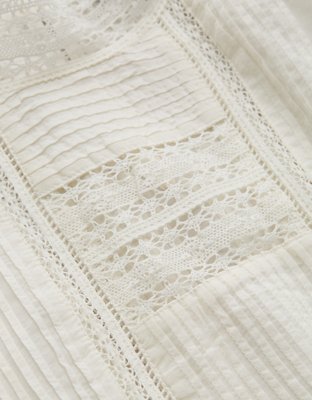 The Details Made from soft lightweight voile fabricIntricate pintucking and lace design throughoutSelf-tie details to cinch waistBack neck button closure Materials & Care 53%...