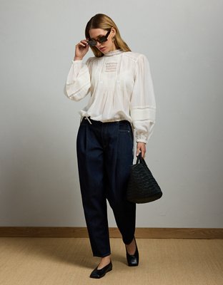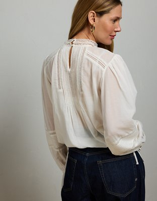 AE77 Premium Lace Peasant Blouse